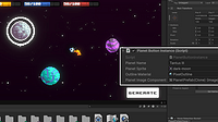 I've got a rocket ship, a particle system for the ship's flame, and a star generator with a light parallax effect. Ky has drawn about half a dozen planets Still fleshing out the core game loop- going...
